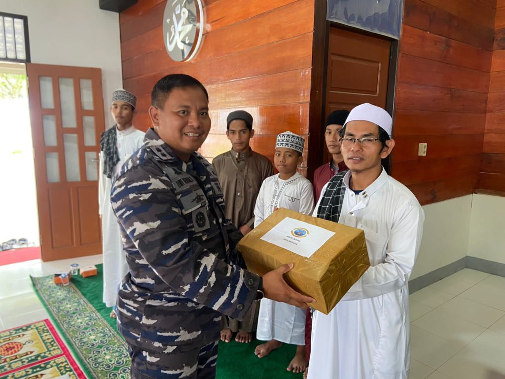 Komandan Pangkalan TNI AL Simeulue Letkol Laut (P) Dwi Herdian Saputra, M.Tr.Opsla., dalam kegiatan ini juga membagikan kebahagiaan kepada para santri dengan menyerahkan tali asih serta diakhiri dengan doa bersama.