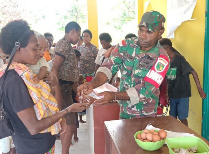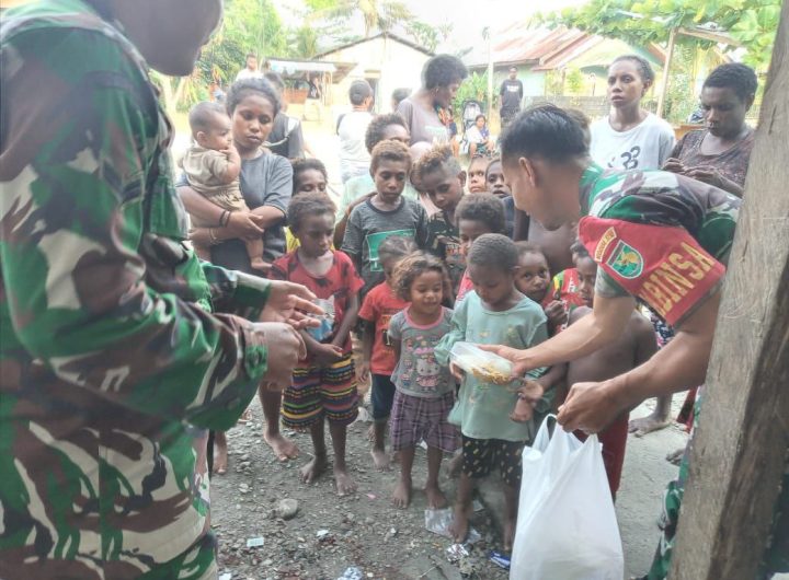 Inilagi.com Babinsa Koramil 1710-03/Kuala Kencana Koptu Alfaris Kumiyu memberikan bantuan PMT (Pembagian Makanan Tambahan) bagi anak-anak sebagai gizi...