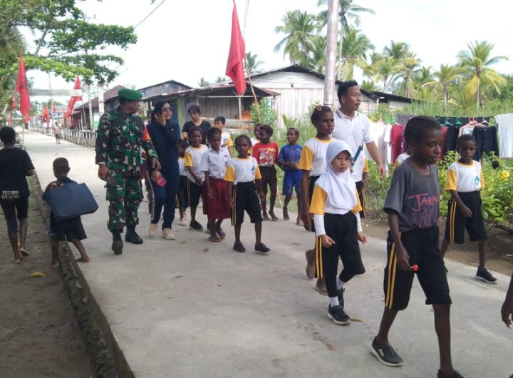 Untuk Menjaga Kebugaran, Babinsa Koramil 1710-01/Kokonao Ajak Siswa-Siswi SDN Kokonao Jalan Santai