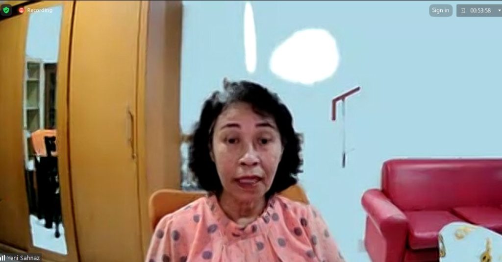 Yeni Sahnaz menjadi narasumber dalam diskusi daring Hati Pena di Jakarta, Kamis malam, 22 Agustus 2024, yang bertema Belajar dari Anak Cerdas Istimewa.