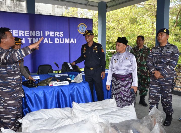 TNI AL, Dumai, 11 Agustus 2023,– Pangkalan TNI AL Dumai menyerahkan barang bukti berupa KLM Putra...