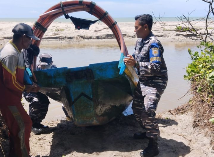 Wujud Kepedulian TNI AL, Babinpotmar Lanal Bengkulu Bantu Nelayan Tarik Perahu Ke Pinggir Pantai